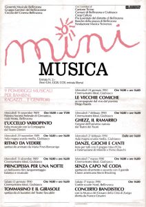 15.10.03.01Manifesto x 2Ritmo da Vedere, Mini-MusicaGrafico: sconosciuto29.11.1989Spettacolo animato da Maria Finzi-Bonzanigo (Maria Bonzanigo)Giubiasco, Aula Magna scuola mediaB/N, arancione