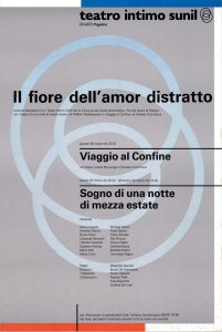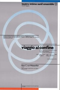 15.10.03.02Manifesto x 2Il Fiore dell’Amore distratto, Viaggio al Confine, Teatro Intimo SunilGrafico: sconosciuto26.03.1985Incontro laboratorioMagadino40 x 60 cm, colore grigio, logo azzurro