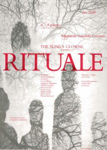 15.10.07.02Manifesto x 10Rituale, The Sunil’s ClownsGrafica: Daniele Garbarino6-8.06.1985Rituale a LocarnoLocarno,Magistrale maschile36 x 49,5 cm, colore bianco,grigio,rosso