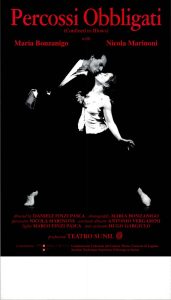 15.10.20Manifesto x 10Percossi Obbligati (Confined to Blows), Teatro SunilArianna Rossi / Grafica: Fabrizia Pasca1995Manifesto baseMaria Bonzanigo, Nicola MarinoniLugano40 x 70 cm, B/N, rossowith: Maria Bonzanigo, Nicola Marinoni / directed by: Daniele Finzi Pasca / choreography: Maria Bonzanigo / percussion: Nicola Marinoni / ssistant director: Antonio Vergamini / lights: Marco Finzi Pasca / tour assistant: Higo Gargiulo,
