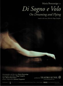 15.10.29Manifesto x 10Di Sogno e Volo (On Dreaming and Flying), Teatro SunilFausto Gerevini2000manifesto con foto braccio MariaMaria Bonzanigo (braccio)Magadino40 x 45 cm, quadricomia, ambiente marrone, foto braccioBased on the Story Elvira by Hugo Gargiulo 7 horeography and direction: Maria Bonzanigo 7 Scenography and effects: Hugo Gargiulo 7 Lights: Marco Finzi Pasca 7 Artistic cooperation: Antonio Vergamini