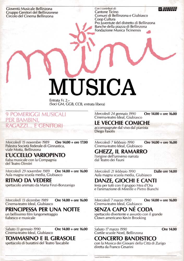15.10.03.01Manifesto x 2Ritmo da Vedere, Mini-MusicaGrafico: sconosciuto29.11.1989Spettacolo animato da Maria Finzi-Bonzanigo (Maria Bonzanigo)Giubiasco, Aula Magna scuola mediaB/N, arancione