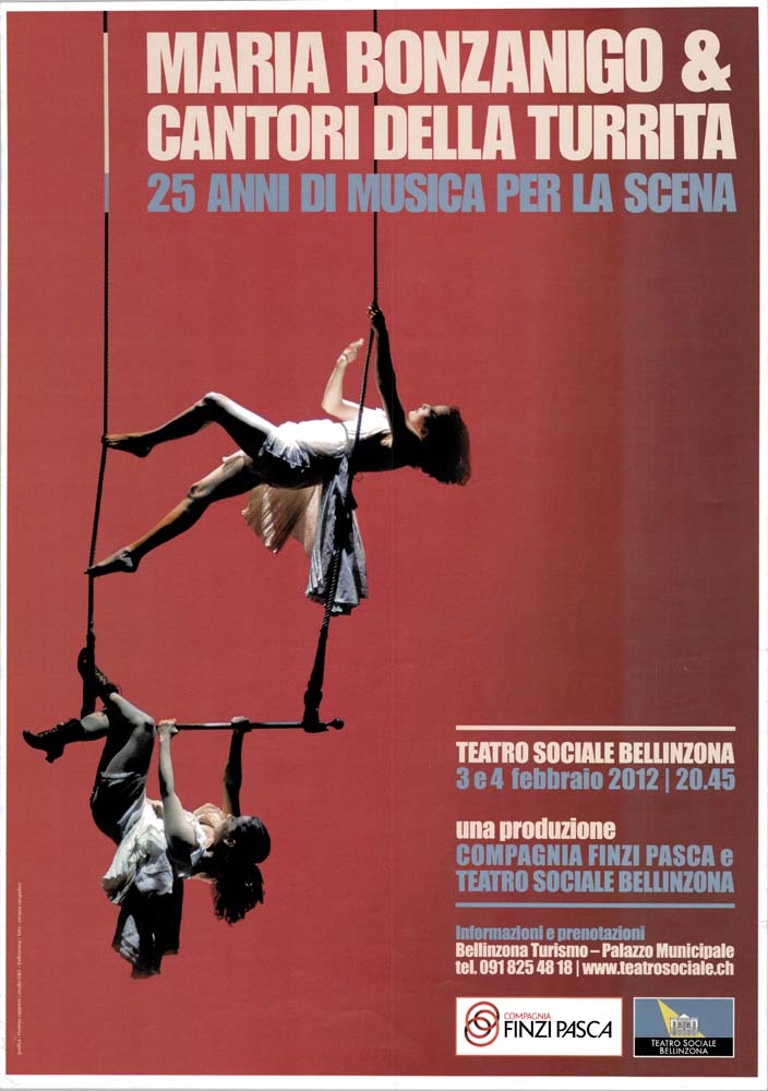 15.10.42Manifesto x 125 Anni di Musica per la Scena, Maria Bonzanigo & Cantori della Turrita, Compagnia Finzi PascaViviana Cangialosi03-04.02.2012Manifesto baseAnnie Kim, Catherine GirardBellinzona30 x 42 cm, quadricromia, foto colori, ambiente rosso